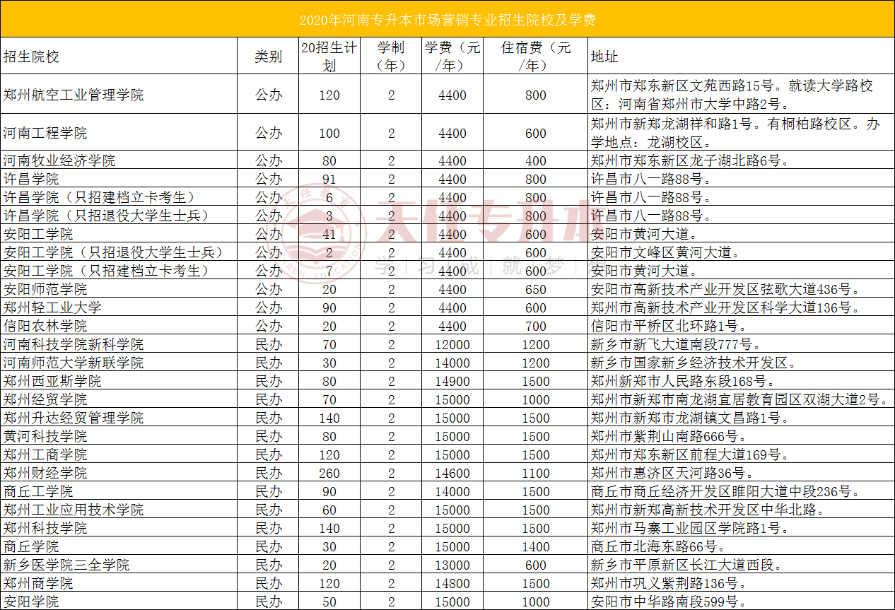 2020年河南专升本市场营销专业招生计划