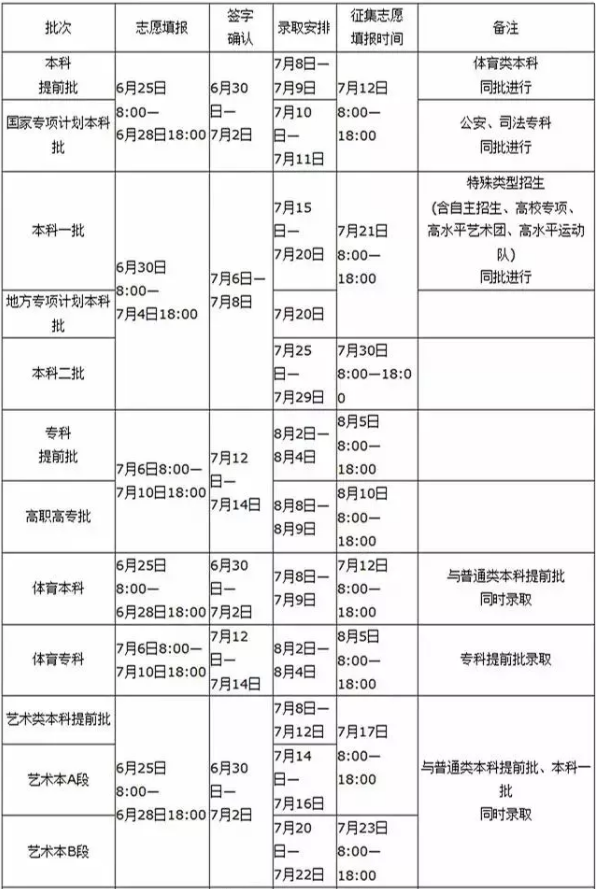 河南省2019年普通高校招生志愿填报及录取时间安排