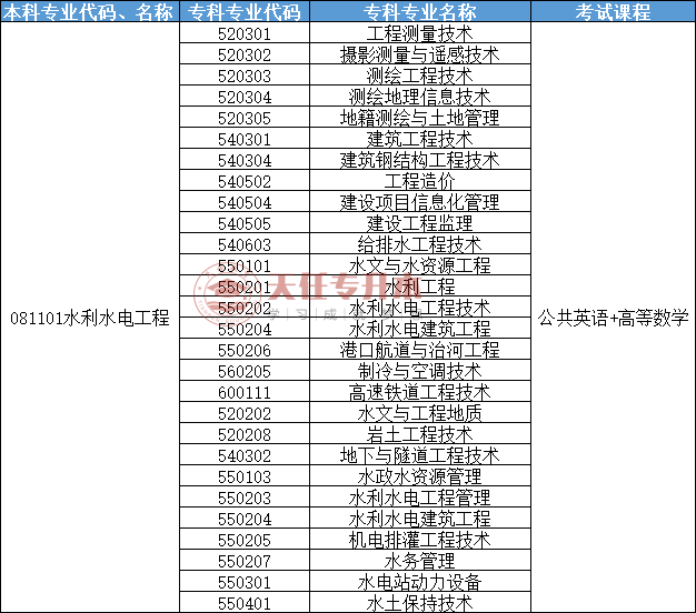 专科学什么专业的同学,专升本可以报考水利水电工程专业