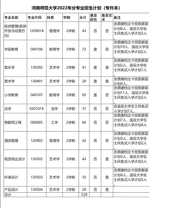 河南师范大学2022年专升本招生计划