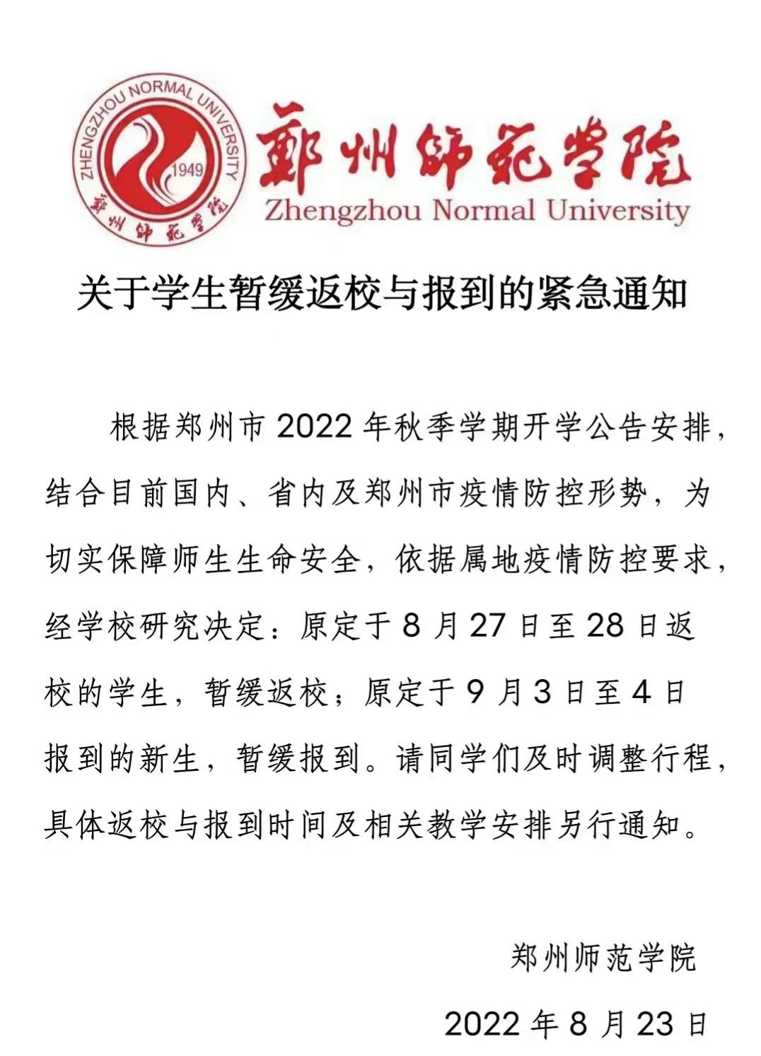 郑州师范学院关于学生暂缓返校与报到的紧急通知