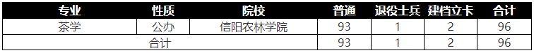 以上就是天任专升本小编整理的茶学专业招生计划,今年茶学专业只有1所公办院校招生,共计招生96人,想了解更多升本咨询请关注招生计划栏目进行查询,祝大家在考试中取得高分。