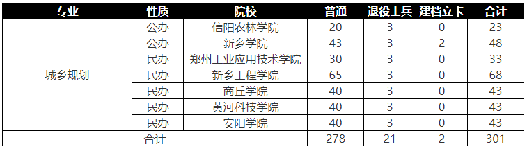 以上就是天任专升本小编整理的城乡规划专业招生计划,今年城乡规划专业共有7所公办院校招生其中2所公办院校5所民办院校,共计招生301人,想了解更多升本咨询请关注招生计划栏目进行查询,祝大家在考试中取得高分。