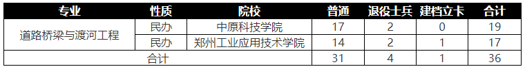 以上就是天任专升本小编整理的道路桥梁与渡河工程专业招生计划,今年道路桥梁与渡河工程专业共有2所院校招生,都为民办院校,共计招生36人,想了解更多升本咨询请关注招生计划栏目进行查询,祝大家在考试中取得高分。