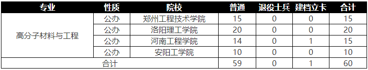 河南专升本高分子材料与工程专业2022年招生计划汇总