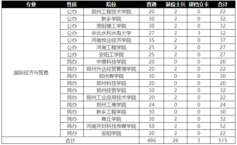 2022年河南专升本招生计划已经公布,对于23年备考河南专升本的考生来说,竞争压力不小,需要认真准备,下面是天任专升本小编给考生整理的国际经济与贸易专业招生计划,具体情况如下: