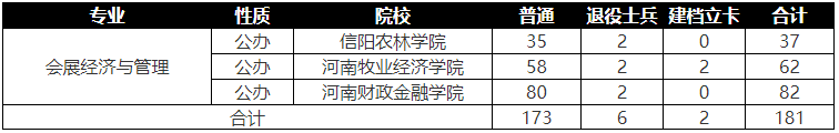 以上就是天任专升本小编整理的会展经济与管理专业招生计划,今年会展经济与管理专业共有3所公办院校招生,共计招生181人,想了解更多升本咨询请关注招生计划栏目进行查询,祝大家在考试中取得高分。