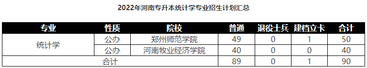 河南专升本统计学专业2022年招生计划汇总