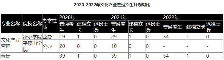 以上就是天任专升本小编整理的河南专升本文化产业管理专业近三年的招生情况,今年共有2所公办院校招生,共招生55人,对于23年备考河南专升本的考生来说,竞争压力不小,需要认真准备!想了解更多升本咨询请关注招生计划栏目进行查询,祝大家在考试中取得高分。