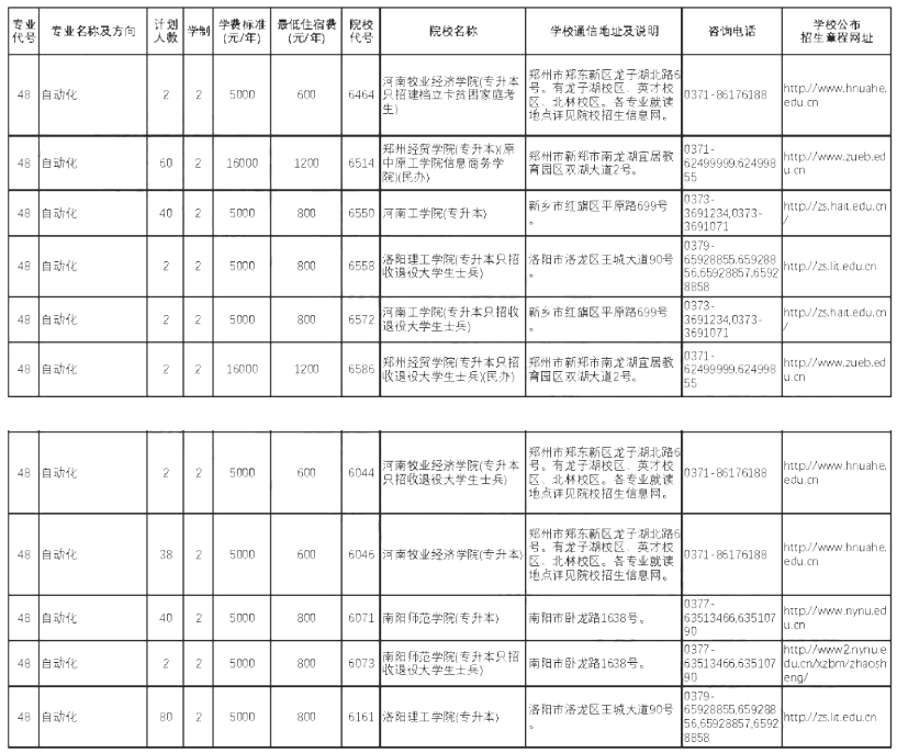 河南专升本2022年自动化可以报考的院校有河南牧业经济学院、南阳师范学院、洛阳理工学院、郑州经贸学院、河南工学院。