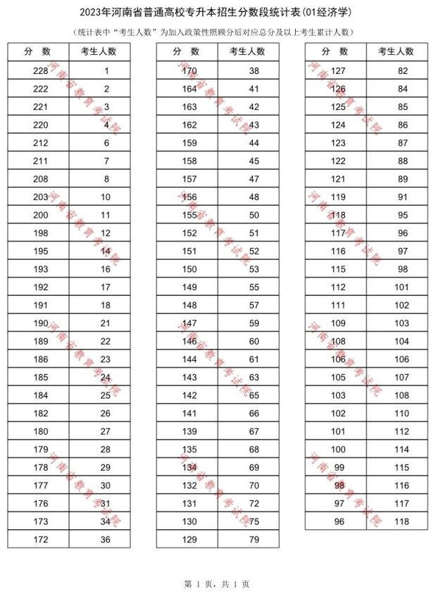 2023年河南专升本经济学专业一分一段表
