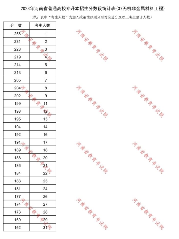 2023年河南专升本无机非金属材料工程专业一分一段表