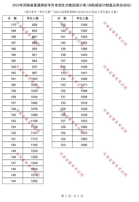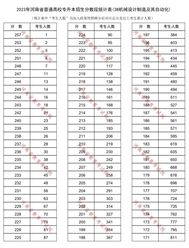 2023年河南专升本机械设计制造及其自动化专业一分一段表