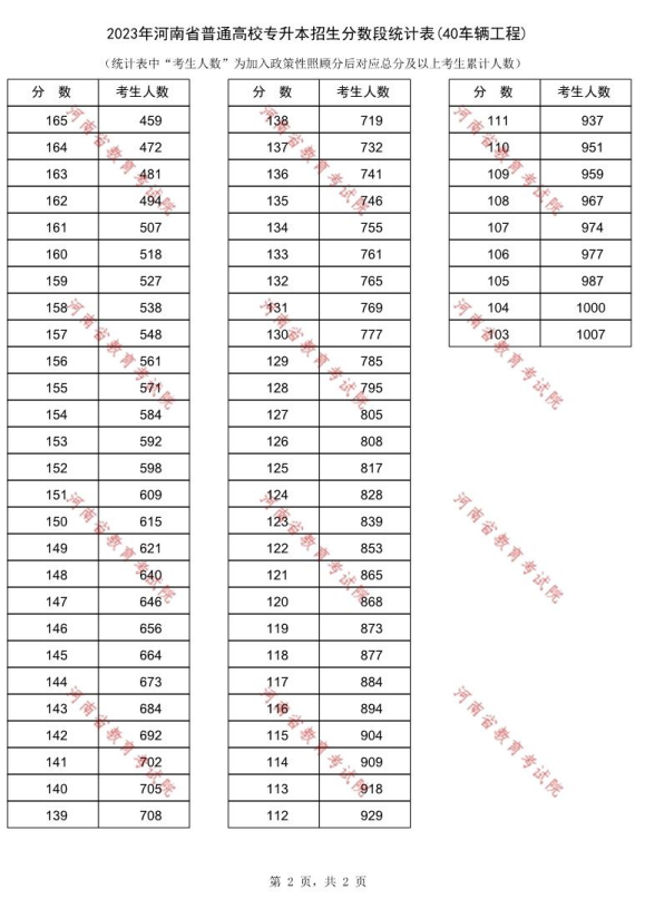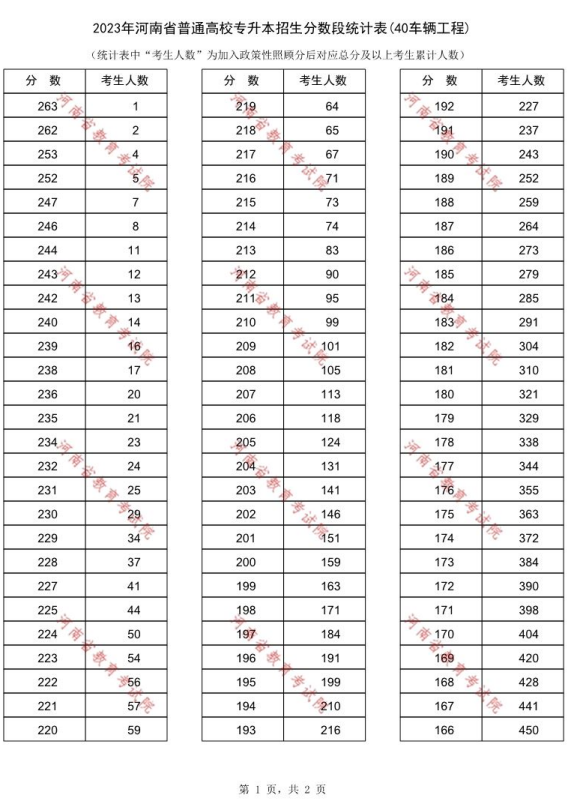 2023年河南专升本车辆工程专业一分一段表