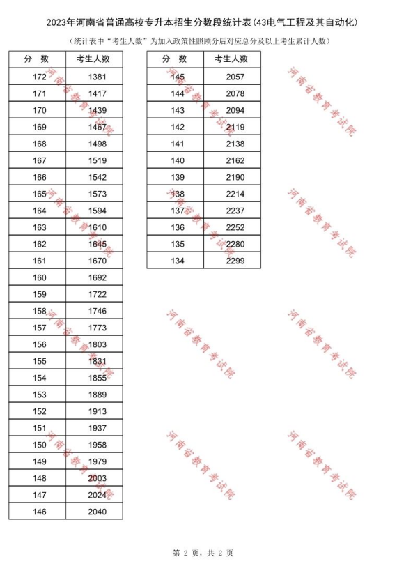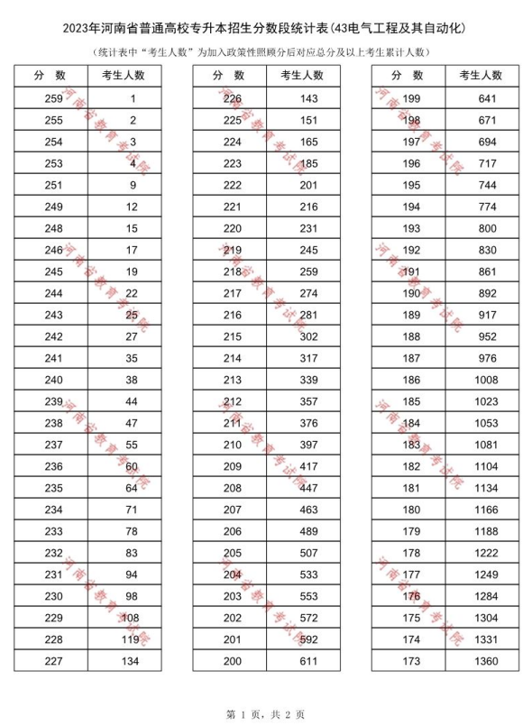 2023年河南专升本电气工程及其自动化专业一分一段表