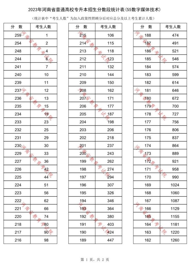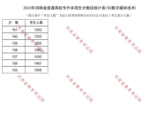 2023年河南专升本数字媒体技术专业一分一段表