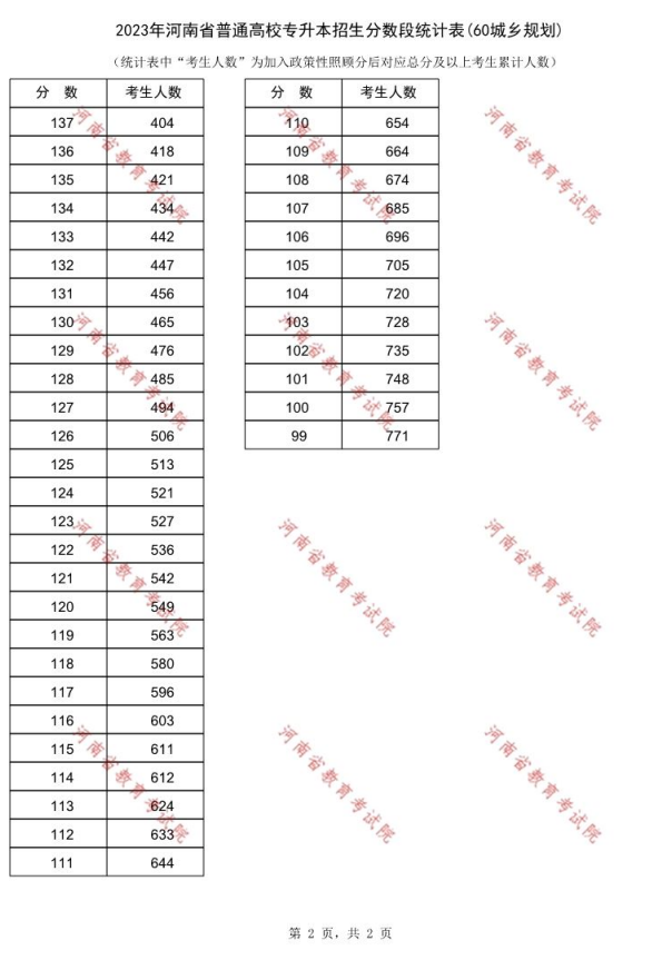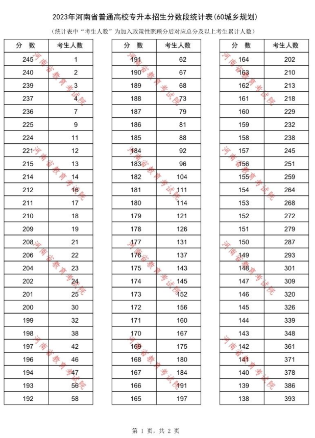 2023年河南专升本城乡规划专业一分一段表