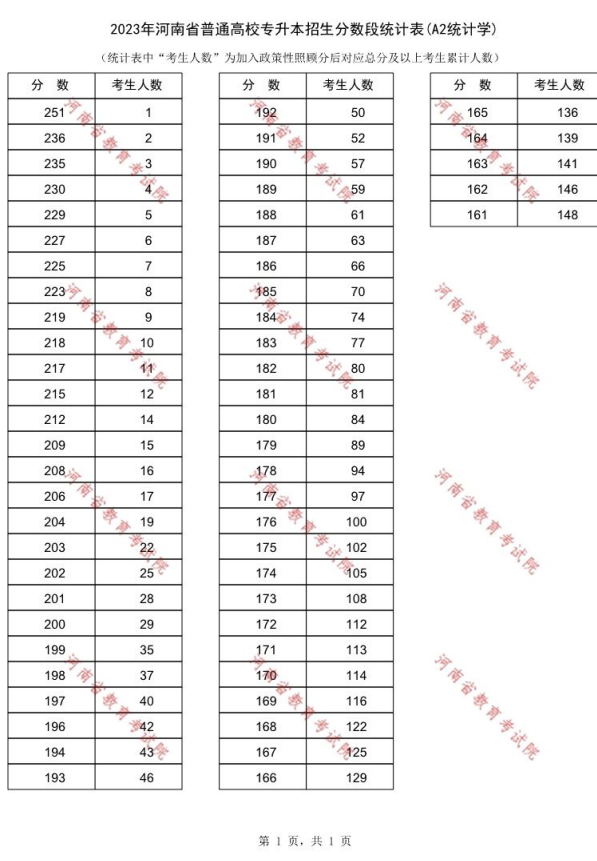 2023年河南专升本统计学专业一分一段表