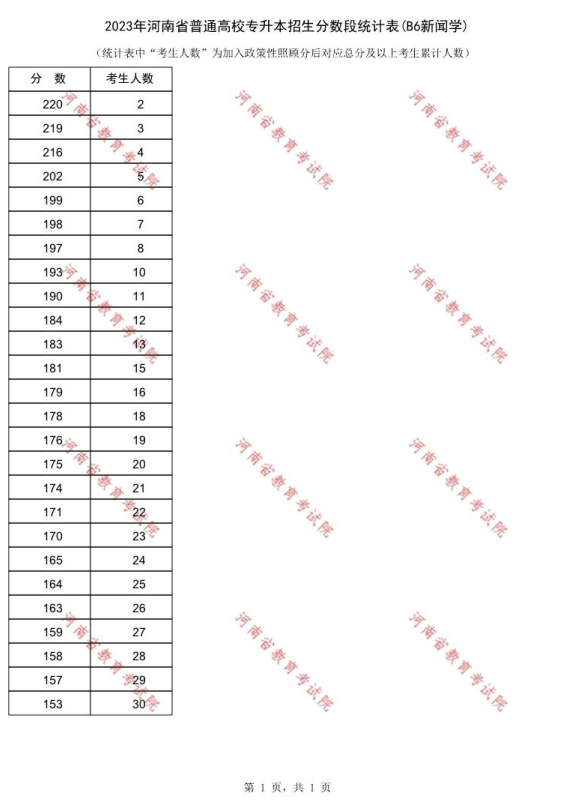 2023年河南专升本新闻学专业一分一段表