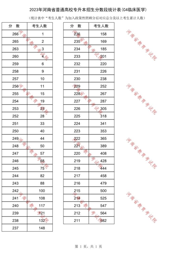 2023年河南专升本临床医学专业一分一段表