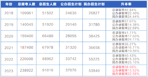 总录取率38.09%左右,公办录取率15.52%,民办录取率22.58%