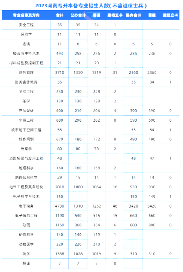 2023年河南专升本各专业招生人数