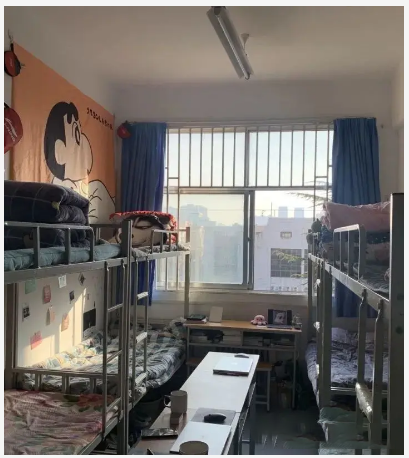 学校宿舍有六人间或八人间,阳台,风扇,龙湖校区西区大部分上床下桌,小部分上下铺,南区均为上床下桌。
