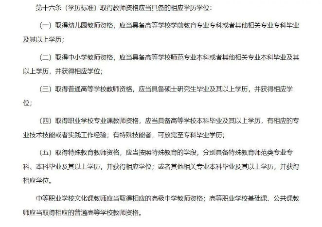 如教育部发布的《教师法修订草案(征求意见稿)》就明确规定,取得教师资格应当具备的相应学历学位。