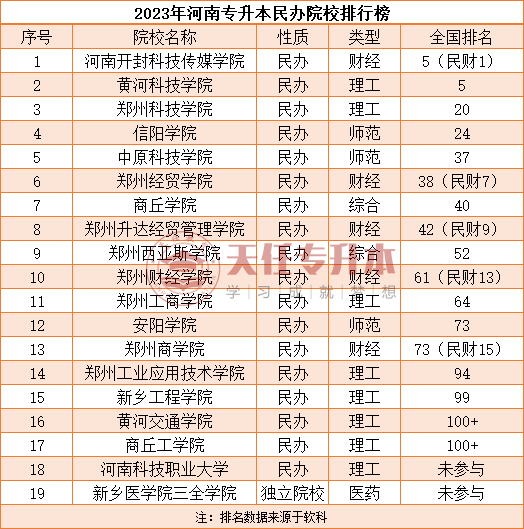 河南专升本院校哪些是三本院校?相信很多小伙伴都是比较好奇的,快跟着天任专升本一起来看看吧!