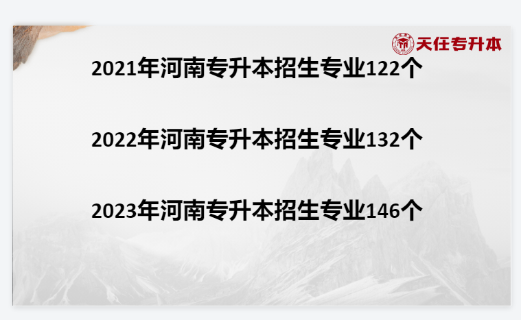 以上就是关于“2021年-2023年河南专升本专业数量是多少个?”简要介绍了,希望大家河南专升本考试能够取得自己心仪的成绩。如有更多想要知道河南专升本常见问题的相关资讯,如专升本招生学校、考试动态、考试科目、招生专业等。敬请关注天任专升本!