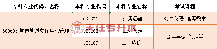 以上就是关于“河南城市轨道交通运营管理专升本考试科目是什么?”简要介绍了,希望大家河南专升本考试能够取得自己心仪的成绩。如有更多想要知道河南专升本常见问题的相关资讯,如专升本招生学校、考试动态、考试科目、招生专业等。敬请关注天任专升本!