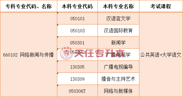 以上就是关于“专科读网络新闻与传播专业,专升本可以学哪些专业?”简要介绍了,希望大家河南专升本考试能够取得自己心仪的成绩。如有更多想要知道河南专升本常见问题的相关资讯,如专升本招生学校、考试动态、考试科目、招生专业等。敬请关注天任专升本!