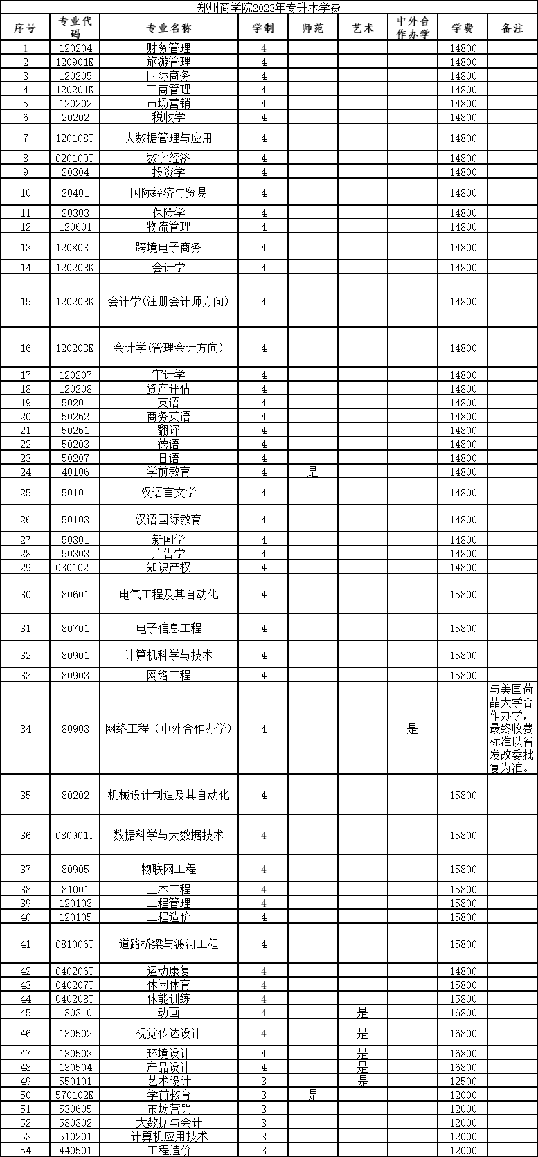 以上就是关于“郑州商学院一年学费多少钱?”简要介绍了,希望大家河南专升本考试能够取得自己心仪的成绩。如有更多想要知道河南专升本常见问题的相关资讯,如专升本招生学校、考试动态、考试科目、招生专业等。敬请关注天任专升本!