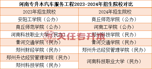 河南专升本汽车服务工程2023-2024年招生院校对比