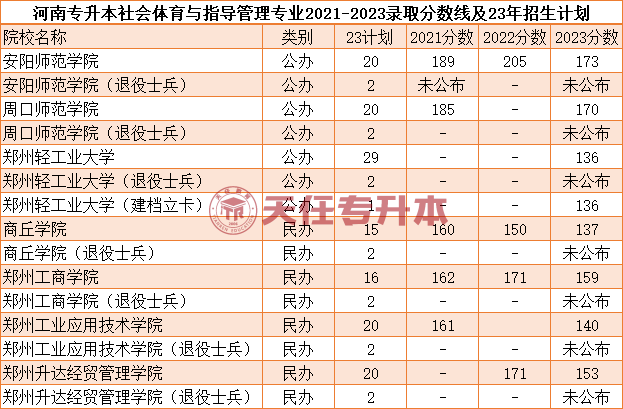 河南专升本社会体育指导与管理2021-2023年专升本录取分数线