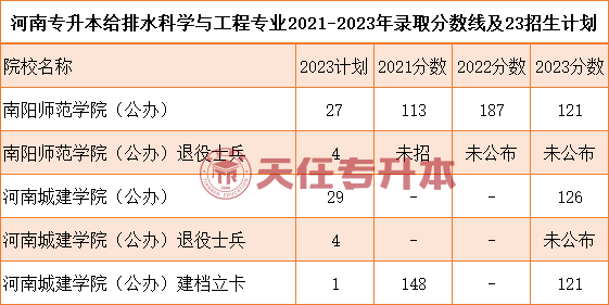 河南专升本给排水科学与工程2021-2023年录取分数线