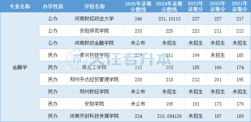 河南专升本金融学2021-2025年录取分数线