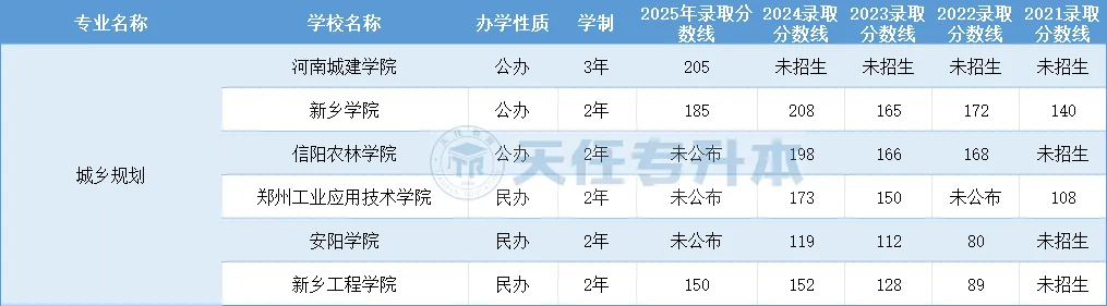 河南专升本城乡规划2021-2025年录取分数线