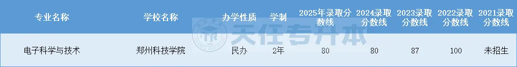 河南专升本电子科学与技术2021-2025年录取分数线