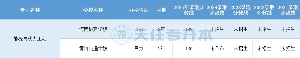 河南专升本能源与动力工程2021-2025年录取分数线