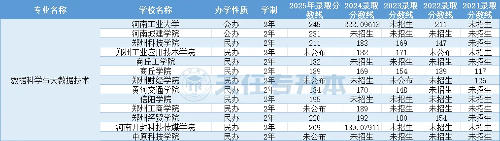 河南专升本数据科学与大数据技术2021-2025年录取分数线