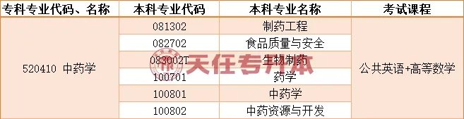 中药学专业专升本选择的本科专业有这些:制药工程、食品质量与安全、生物制药、药学、中药学、中药资源与开发。这些专业的考试内容是公共英语和高等数学。