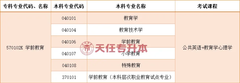专科读学前教育专业,专升本对应本科专业是哪些?考试内容是什么?学前教育专业专升本对应的本科专业是教育学、教育技术学、学前教育、小学教育、特殊教育、学前教育(本科层次职业教育试点专业),这个专业考试内容是公共英语和教育学心理学。
