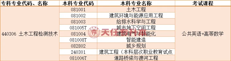 土木工程检测技术专升本选择的本科专业有这些:土木工程、建筑环境与能源应用工程、给排水科学与工程、城市地下空间工程、建筑电气与智能化、智能建造、城乡规划、建筑工程(本科层次职业教育试点专业)、道路桥梁与渡河工程。这些专业的考试内容是公共英语和高等数学。