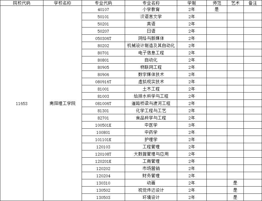 南阳理工学院2026年专升本招生专业
