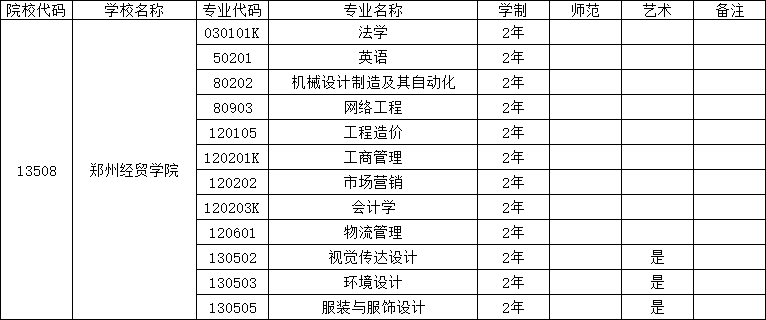 郑州经贸学院2026年专升本招生专业