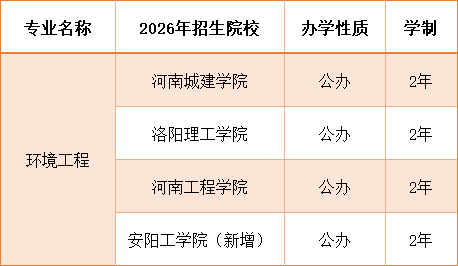 2026年河南专升本环境工程招生院校