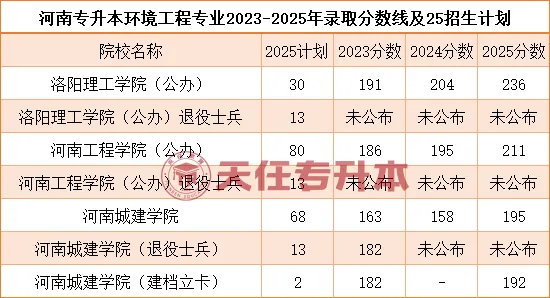 2025年河南专升本环境工程专业共招生219人,3所招生院校都是公办院校,录取分数比较高的是洛阳理工学院,达到236分。
