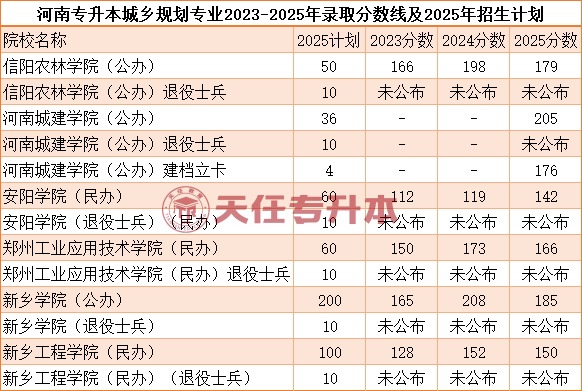 2025年河南专升本城乡规划专业录取数据