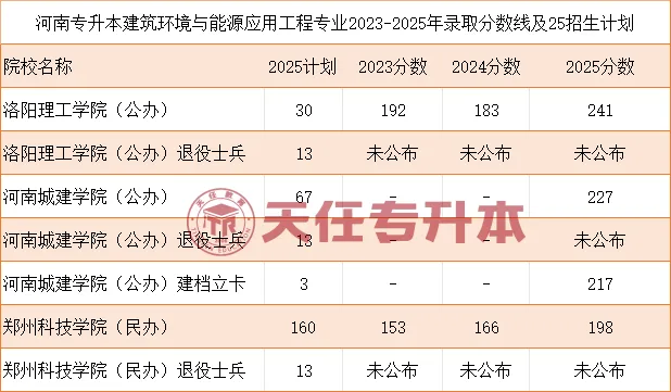 河南专升本建筑环境与能源应用工程2025年录取数据